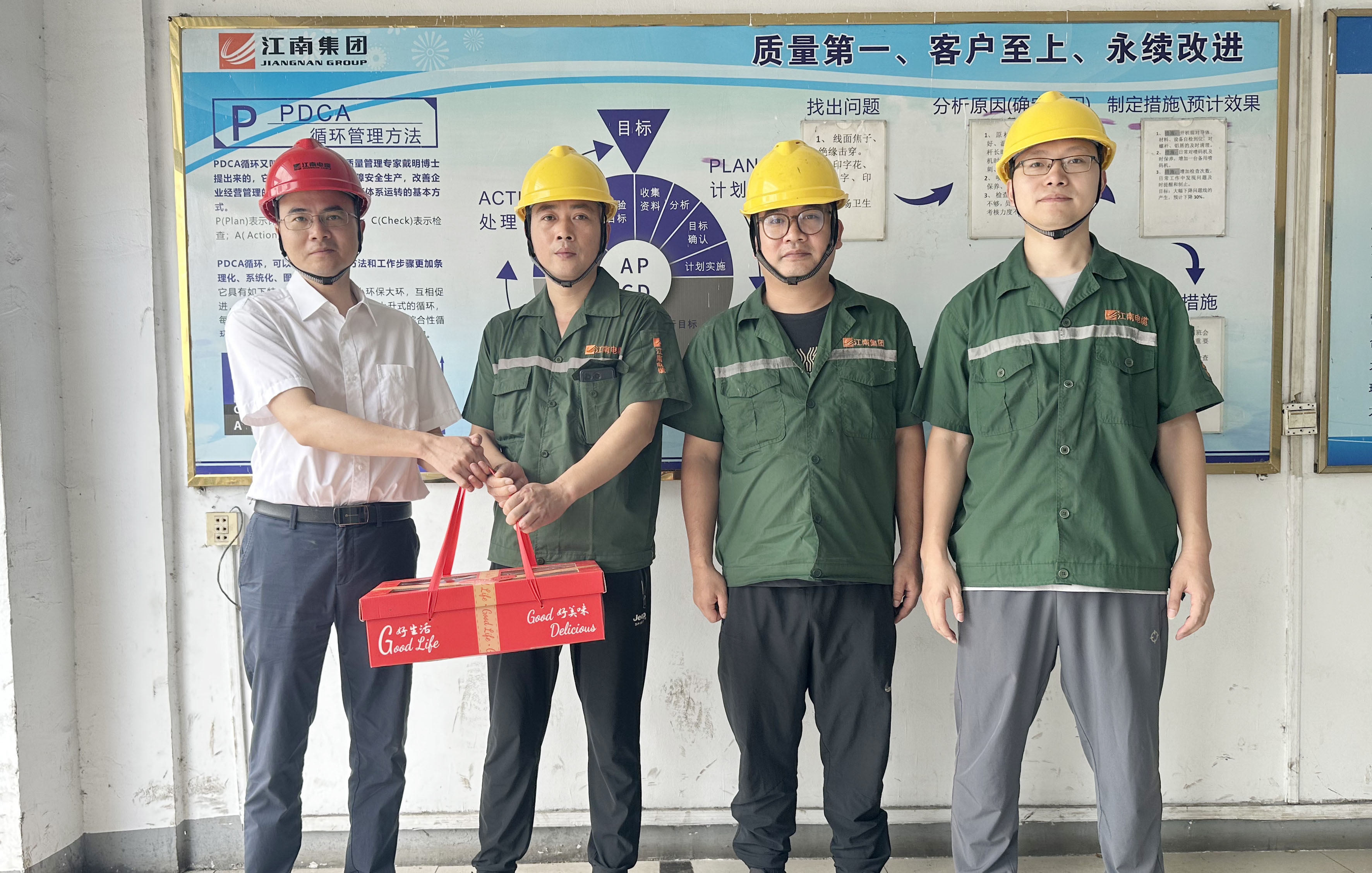 副總經(jīng)理曹順康、綜合事業(yè)部總經(jīng)理丁作為赴特纜分廠送清涼