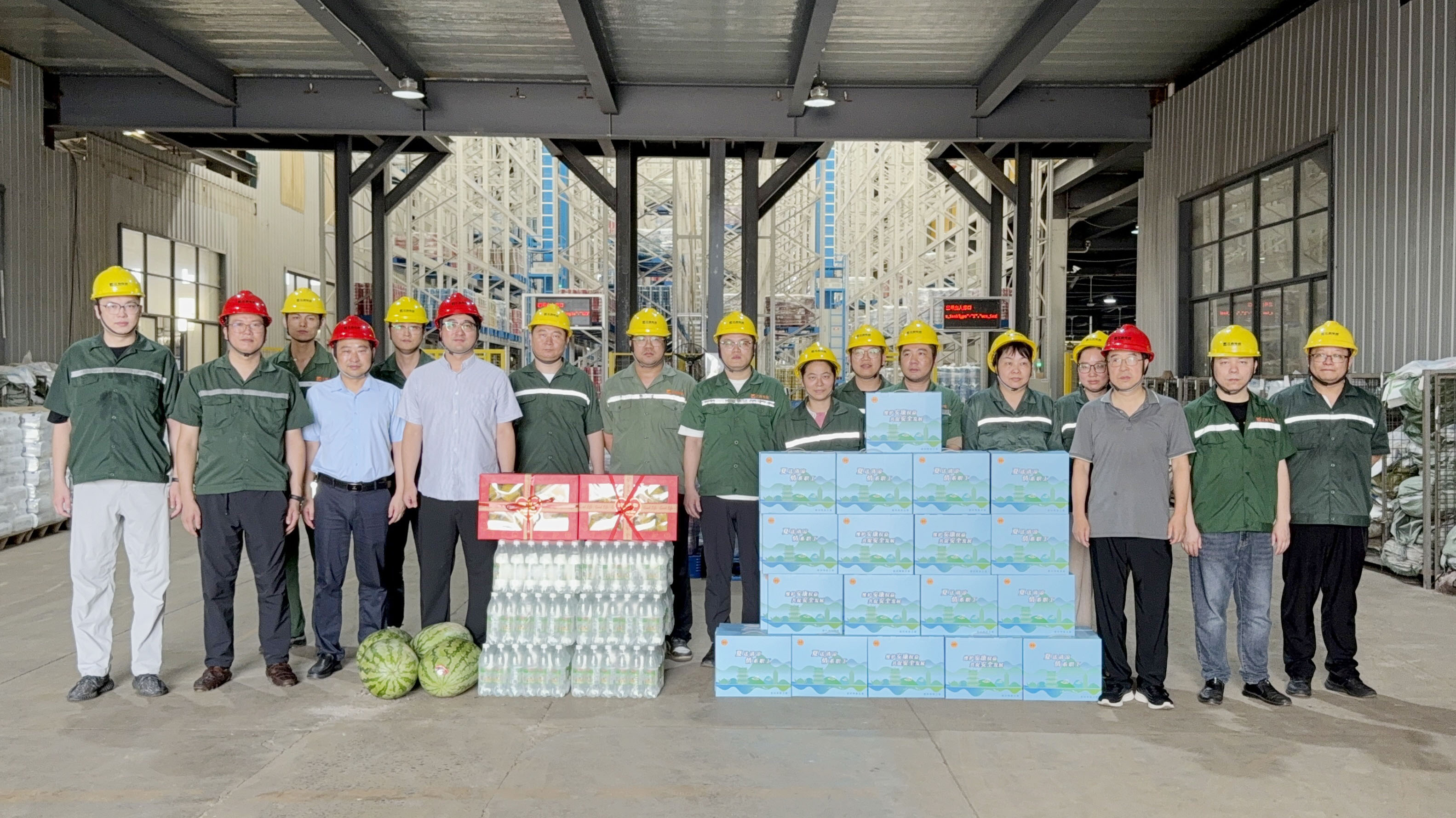 副總經(jīng)理沈建國、副總經(jīng)理芮放赴物流中心、成品倉庫送清涼
