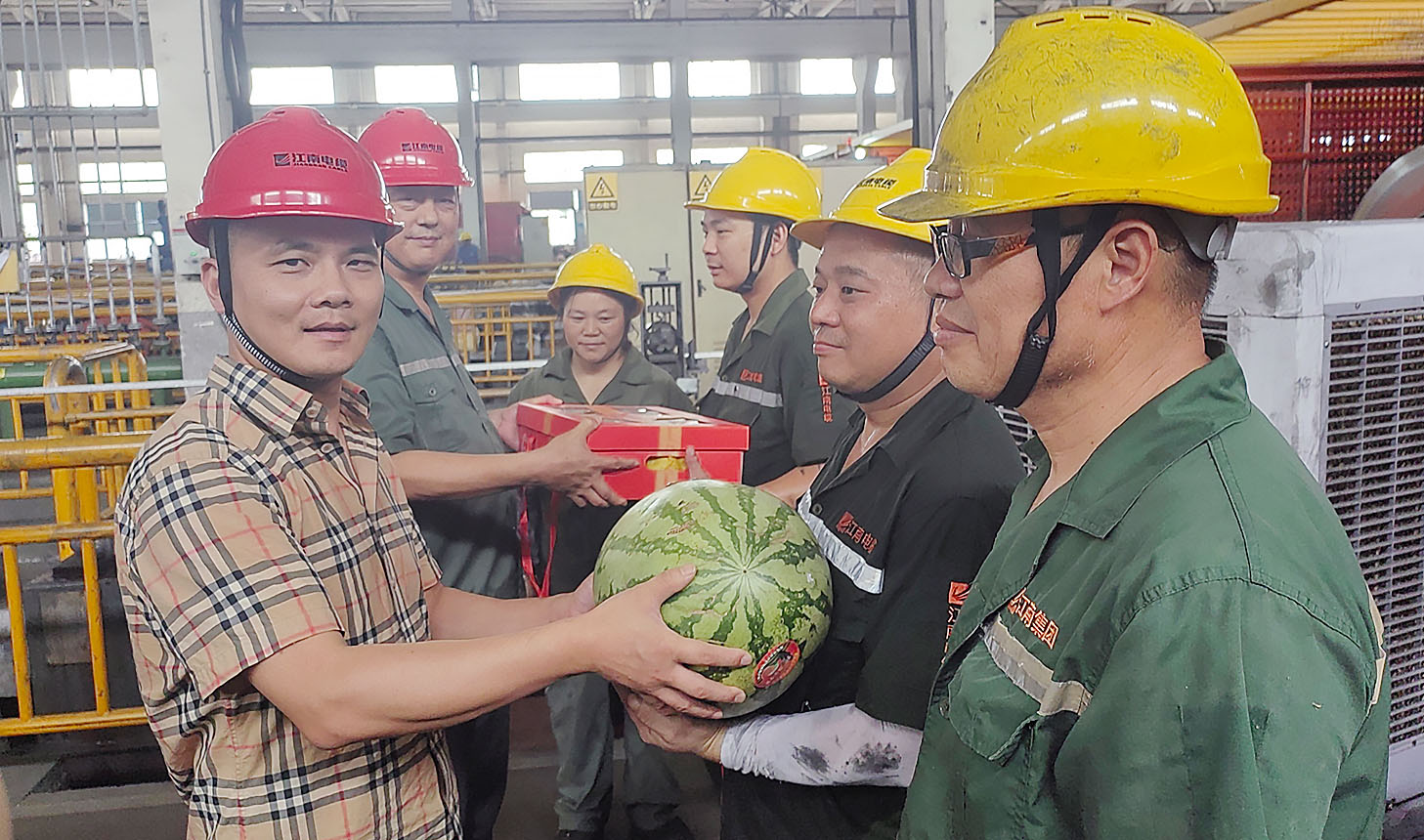 慰問期間,公司領(lǐng)導與員工們親切交流,送上防暑降溫物資,認真詢問員工的生產(chǎn)工作安排和生活保障情況,對一線員工戰(zhàn)高溫、斗酷暑、保生產(chǎn)的辛勤付出表示感謝,并叮囑大家務(wù)必注意勞逸結(jié)合,做好防暑降溫工作。