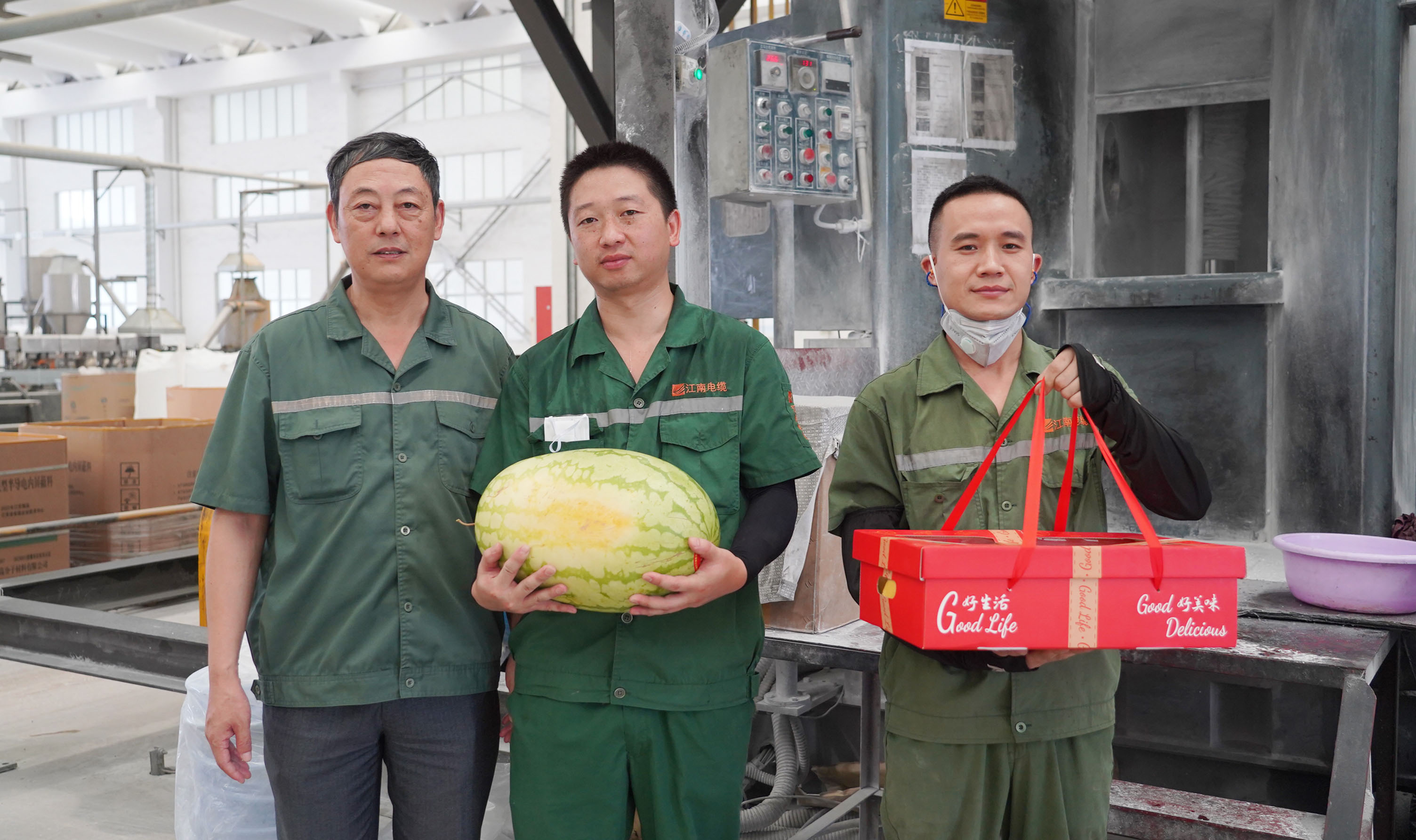 副總經(jīng)理周駿、總經(jīng)理助理陸建平赴防火鋁線電纜分廠九車間送清涼
